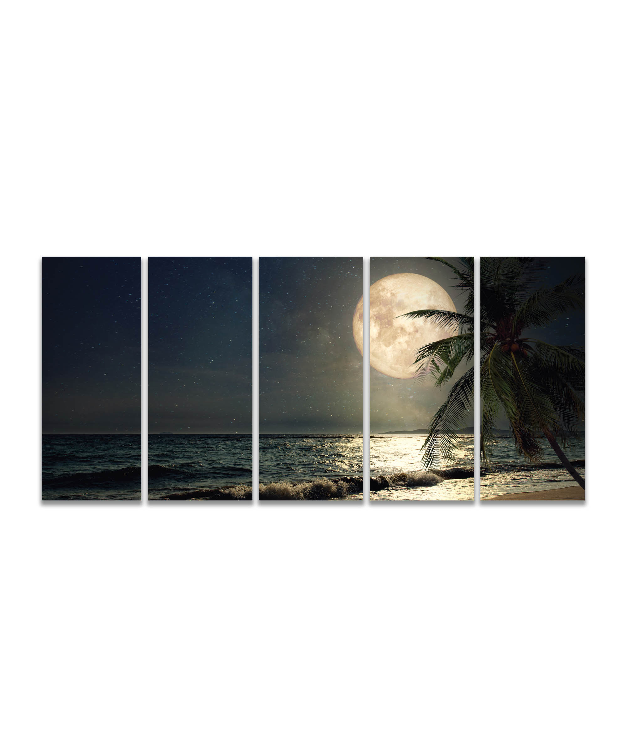 Specifikace obrazu Pláž s palmou při měsíci 100x45 cm, 5 dílů: