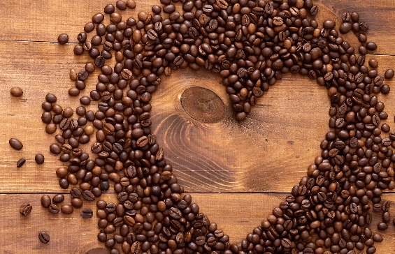 Obraz zrnka kávy ve tvaru srdce 90x60 cm