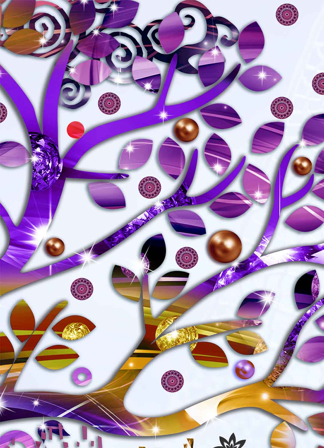 Specifikace obrazu malovaný abstraktní strom fialový 75x45 cm: